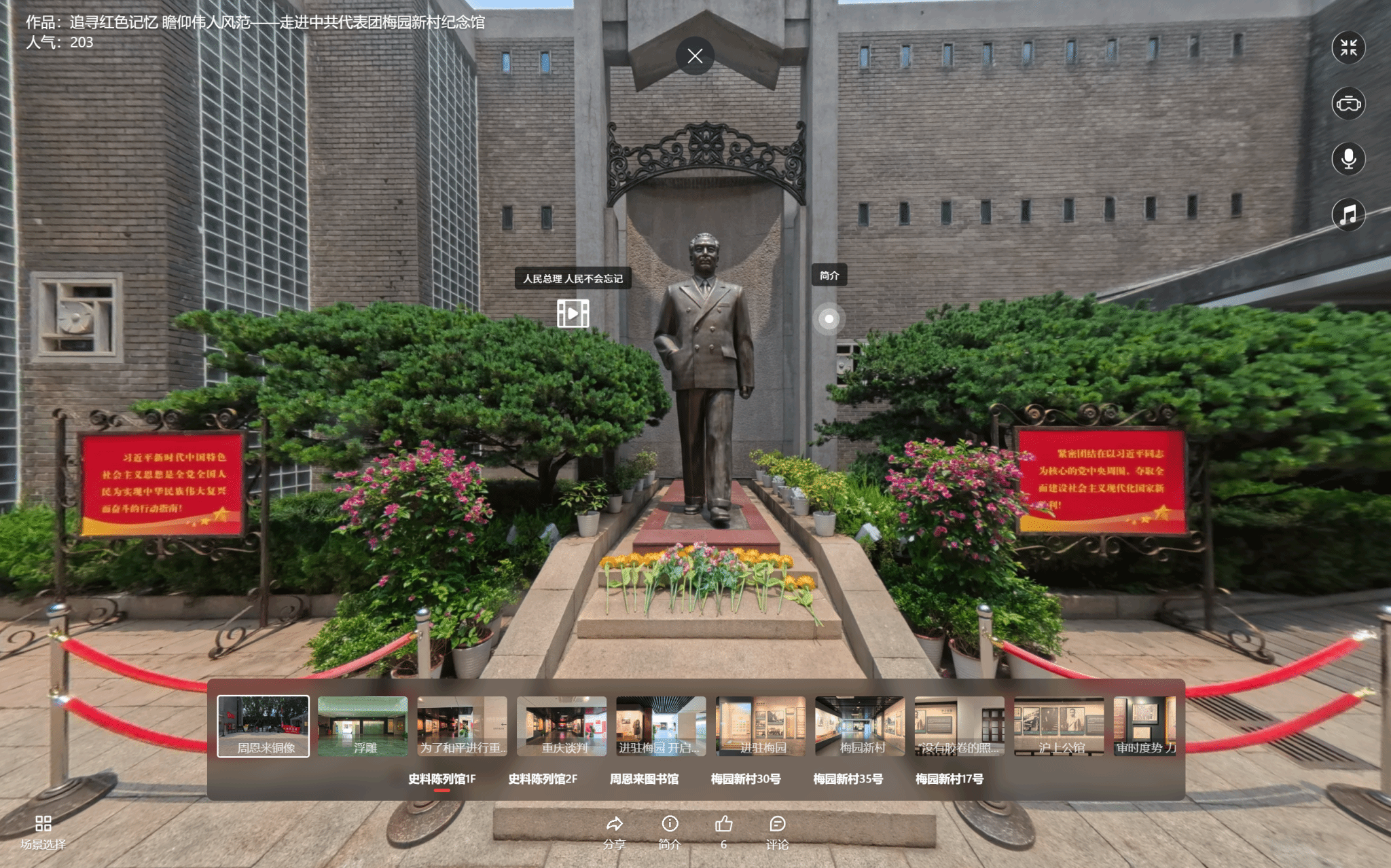 我校黄亚鹏、徐雅婷等六位同学组建的参赛团队,于今年7月前往南京市参观中国共产党代表团梅园新村纪念馆,紧扣“追寻红色记忆,瞻仰伟人风范”的主题,耙梳“南京谈判”的历史经纬,了解周恩来等革命先辈为革命事业建立的丰功伟绩。队员们团结一心、相互配合,运用360全景相机对梅园新村纪念馆、周恩来图书馆展厅和中共代表团办公原址及居住地进行取景,将静态的实地红色资源转化为动态的线上数字化场景,构建了中共代表团梅园新村VR红色展馆,让梅园风范在数字时代焕发新的生命力。回顾参赛过程,参赛队员感触颇深、受益匪浅。这段旅程既是与红色历史的深度对话,更是一场奇妙的蜕变,让红色精神在心中愈发鲜活。