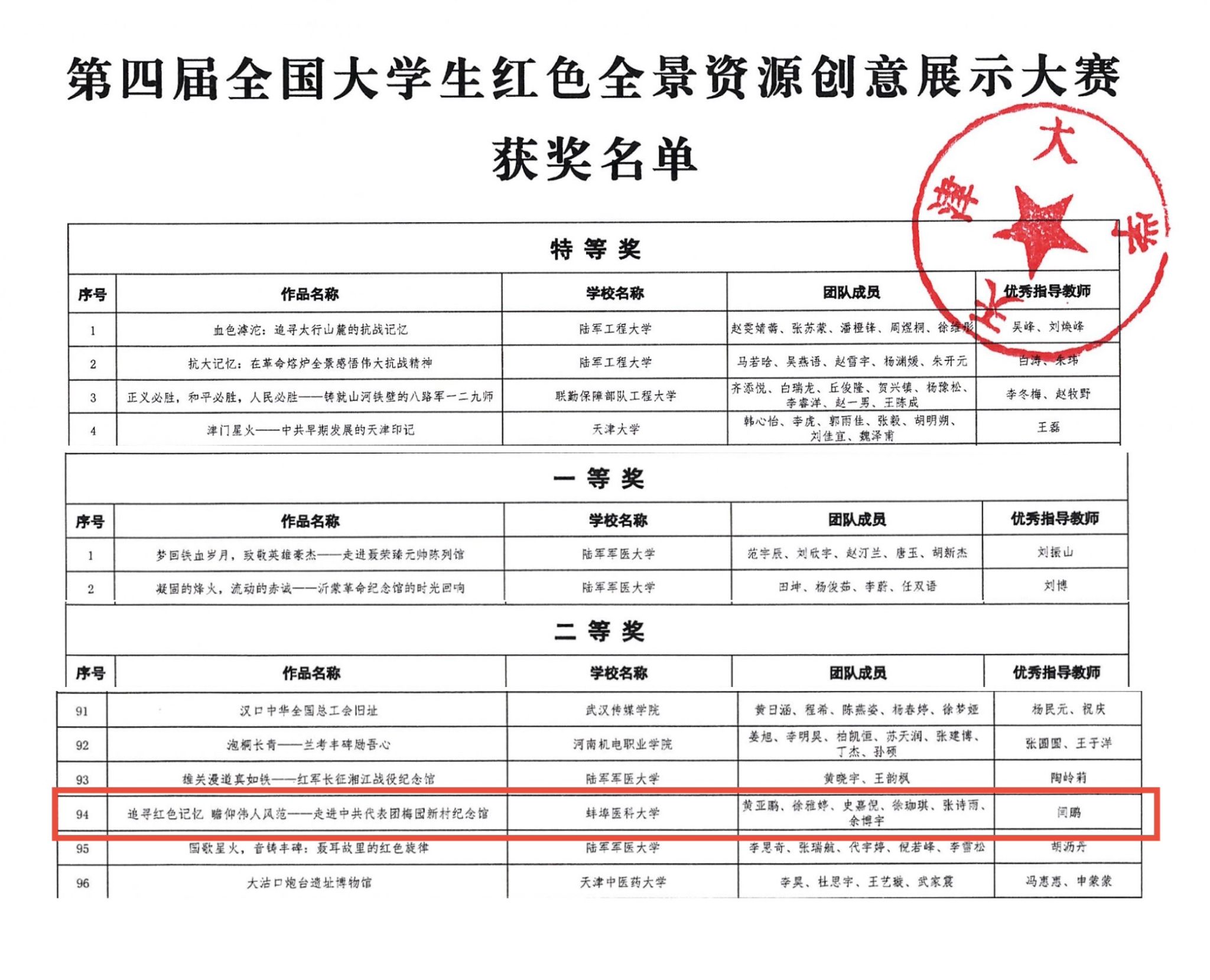 近日,全国高校“大思政课”育人平台“人民公开课”公布了第四届全国大学生红色全景资源创意展示大赛成绩,我校学生团队作品荣获二等奖。此赛事由教育部全国高校思政课虚拟仿真体验教学中心(天津大学)、教育部课程思政教学研究示范中心(天津大学)、教育部红色文化弘扬基地(天津大学)、天津大学中国共产党人精神谱系研究中心主办,旨在引领大学生运用人工智能、虚拟现实等数字技术,全景展示中国共产党百余年的辉煌历程、新时代的伟大成就以及革命博物馆、党史馆、革命旧址等红色资源,讲好红色故事,传承红色基因,赓续红色血脉,弘扬以伟大建党精神为源头的中国共产党人精神谱系,为实现中华民族伟大复兴凝心聚力。本届大赛吸引众多团队参赛,共征集来自31个省(市、自治区)330余所高校提交的1700余件作品。经过专家评委、资深媒体评委、大学生评委等多轮评审,最终评出获奖作品。